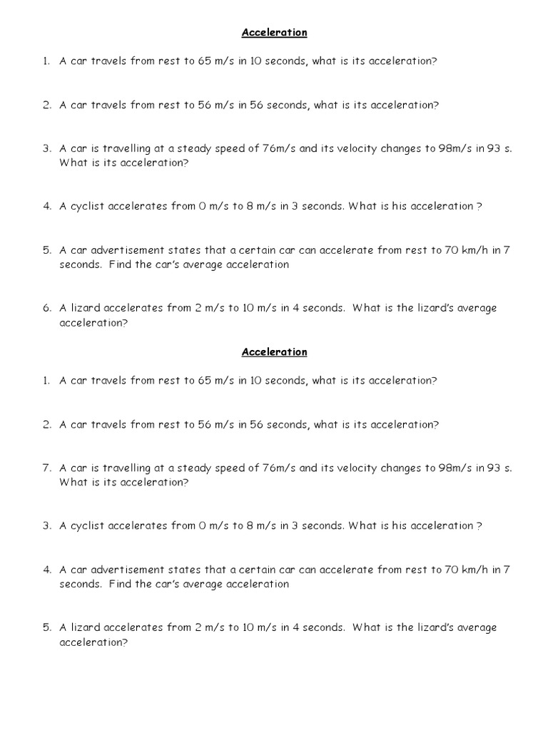To determine the rate of acceleration you use the formula below. Oct 24 2016 - This worksheet will prepare students to solve simple problems including acceleration and deceleration. Physics Acceration Speed Speed And Time Answer Key - Displaying top 8 worksheets found for this concept.